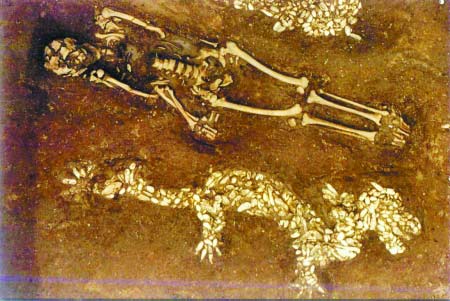 昨日上午9时许,参与濮阳西水坡“中华第一龙”出土挖掘的主要人员、著名历史文化专家、濮阳市龙文化研究会副会长孙德萱在看罢该蚌壳照片后称,23年前,濮阳县城西水坡仰韶文化遗址发现的“中华第一龙”的确是用蚌壳摆塑而成的,其龙图案昂首、弓身、长尾,前爪扒、后爪蹬,状腾飞,后经国内考古专家对蚌壳进行鉴定,距今约6400年,上下误差不超过150年。
