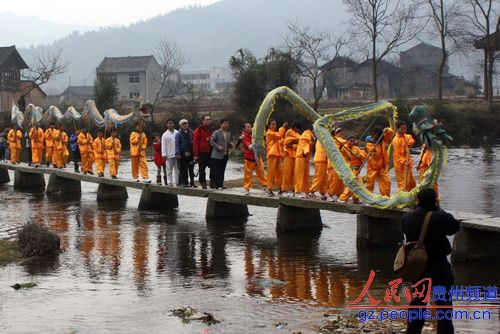 贵州隆里:舞龙文化进课堂(图) 2011年09月22日 中国网 为传承花脸龙这一非物质文化遗产,贵州省锦屏县隆里中小学把舞龙文化作为教学内容引进课堂,还成立了一支少年舞龙队。 隆里古城已有600多年的历史,舞龙表演是当地老百姓世代相传、根深蒂固的风俗。为继承这一传统文化,当地把舞龙文化作为教学内容引入中小学课堂,手把手的教学生进行表演。 近年来,当地又成立了一支少年舞龙队,每逢庆祝丰收和节日喜庆的时候,学校就会组织少年舞龙队出来表演。他们的表演成了隆里古城一道亮丽风景线,深受中外游客的喜爱。(石福涛)来源人民网)