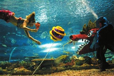 1月21日,在菲律宾马尼拉的海洋馆里,潜水员在水下舞龙迎接即将到来的龙年春节。