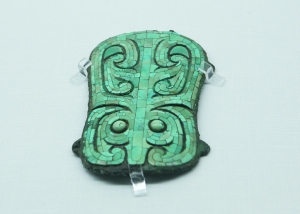 二里头遗址也被称为“夏都遗址”,曾出土有多件绿松石铜牌饰,其中以1981年发掘V区M4号墓时出土的一件最为精致。以往研究人员对这种绿松石铜牌饰的兽面纹含义存在争议,有的认为是犬纹,有的则认为是虎纹。