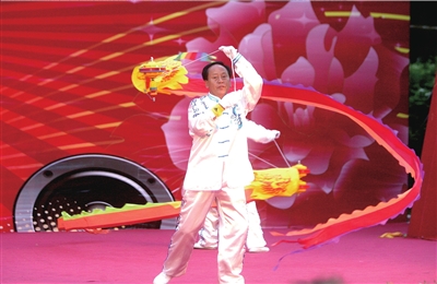 空竹舞龙 www.sina.com.cn 2009年08月21日 京华时报 昨天,舞动的彩龙在地坛公园纷飞,引得游人阵阵喝彩。当天,地坛公园举办了第五届游人艺术节活动,这是一个游人自行管理、共同参与的活动。龙之队的表演负责人介绍,“舞动中国龙”的设计灵感来自于空竹的呼啦圈转法,并在空竹上加以龙头彩带,极为传神。 本报记者欧阳晓菲 郭爱娣摄影报道