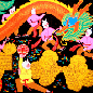 民间画龙有“九像说”:头像牛,身像鹿,眼像虾,嘴像驴,须像人胡,耳像狸猫,腹像蛇肚,足像凤趾,鳞像鱼。其实,龙的容合对象远远不止这些,多种动物和自然天象,都参与了龙的容合。
