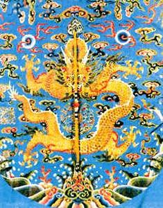 五彩龙凤 <分类浏览> 着十二章兖服之王者( 五代 ) 清乾隆夕月礼服袍前胸刺绣坐龙 五龙夹袍局部(织绣工艺 绣花服装) 二龙戏珠( 织绣工艺 刺绣靠垫) 大方龙(织绣工艺 手工绣片 ) 绒绣坎肩(织绣工艺 绣花服装) 十团龙蟒( 织绣工艺 戏剧服装 ) 绒绣坎肩局部(织绣工艺 绣花服装 平金三龙常衣(织绣工艺 绣花服装) 男改良蟒( 织绣工艺 戏剧服装 ) 12►