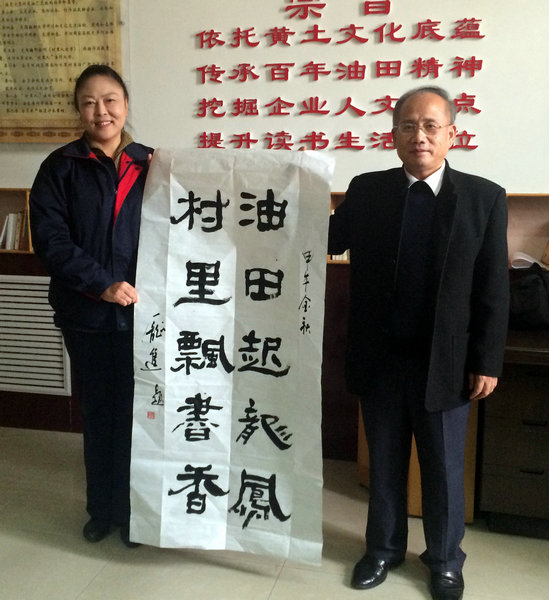 龙凤国际联合会主席、中华龙凤文化研究中心主任、西安中华龙凤文化研究院院长庞进以特邀作家身份参加了这次活动。期间,庞进为延长石油展览馆题写了“陆油始祖百载辉煌”;为七里村采油厂“村里人”读书会题写了“油田起龙凤 村里飘书香,”并以《龙凤文化》相赠;为瓦窑堡采油厂采油五大队题写了“油田龙腾”、“与梦想同行 伴油井春秋”等;为油田董事长杨悦题写了“龙福天下”;为油田工会主席冯建平题写了“龙腾虎跃”,为油田工会题写了“腾龙起凤”等。期间,庞进还作《延长油田采风三首》。分别为:之一:“和谐一动即延安,金风染醉万壑原。小学校里观初井,甘谷驿中叹百年。沧桑历历英雄事,风貌幅幅励志篇。一曲长歌信天游,油花红透山丹丹。”之二:“满目斑斓到子长。下油队,进站房;扑面热情,展牌如画廊。磕头泵前讲管理,言成诗,语铿锵。春夏秋冬山梁上。顶风雨,冒雪霜;心系家国,处处责任强。好在劳逸可结合,太极美,菜根香。”之三:“霜月如画采风来,感动感悟感而慨。山畔沟岔机轮转,望察问听眼界开。铁马成阵皆良御,乌龙化虹靓宝台。何处寻找英雄汉,黄土高原有英才。”