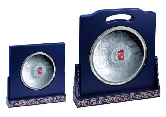 盘是独特的创意。盘,扁而浅盛放物品的器皿。“盘”字分拆,上是“舟”,下是“皿”,很明显,是能行于水的器皿。龙腾其上,从12生肖的极目处走来,向12生肖纵深处行去。《康熙字典》解“盘”,字意五行为“水”,吉凶寓意为“吉”。盘之历史,与中华文明共同绵延数千年。新石器原始陶盘,拙朴;春秋战国青铜盘,大气;三国漆木盘,艳丽;唐代鎏金银盘,华贵;宋代瓷盘,精细。到现代,中国金币总公司一年一度推出的龙年生肖金银盘,虽赋予新潮时尚的元素,但传承民族精神不变,再现传统文化不变,从而在传统的承载体上,又形成了它别样的个性色彩,别样的文化品质,别样的雅致风貌。