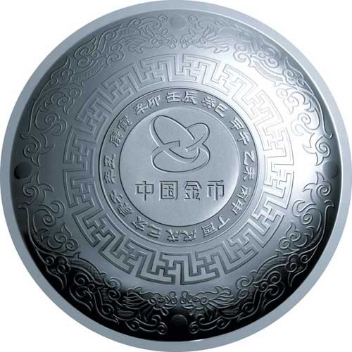 龙年生肖金银盘的背面图案,延续前几款的设计思路,以唐代12时盘为切入点,但更精雕,更细刻,也更富有文化内涵。据《清异录•器具》:“唐库有一盘,色正黄,圆三尺,四周有物象。元和中,偶用之,觉逐时物象变更。且如辰时,花草间皆戏龙,转巳则为蛇,转午则成马矣,因号‘十二时盘’。”背图的整个盘面,内外共有4环,环环相扣,一环一个主题。其中心,上为中国金币总公司标志图案,下为“中国金币”4个大字,这是权威品牌的展示。环于其外的,12生肖“甲午”、“乙未”、“丙申”、“丁酉”、“戊戌”等,以隶书形态,密密环绕,而2010“壬辰”二字,则居于顶,且以粗体加以重点突出。龙年生肖金银盘是典型的生肖贺岁产品,因此,以12生肖为刻表,相对应12时盘,既新鲜,又形象,又生动。再外,是密密相织的“万”字回纹,此刻它有两层喻意,也象征守卫万里疆土的巍巍长城,也象征平民百姓居家过日子的庭院。或前者,或后者,都是中华文化的展现。盘面的最外圈,则是4条纹饰化的飞龙。飞龙一分为二,上下各半,图为“二龙戏珠”。关于龙珠,《庄子》有言:“千金之珠,必在九重之渊而骊龙颌下。”成语也有“龙珠在颌”一说。据《述异记》:“凡有龙珠,龙所吐者……越人谚云‘种千亩木奴,不如一龙珠’。” 一颗龙珠能胜过种一千亩柑橘,此价值之高,当刮目相看。但,在龙年生肖金银盘之上,龙珠只是龙的点缀,而龙,既是“生肖”的展现体,也是“贺岁”的展现体。至此,金银龙盘背图完美收官。