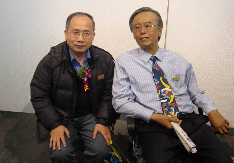本站讯 2011年2月5日(辛卯正月初三),著名龙凤文化研究专家、中华龙文化协会名誉主席、中华龙凤文化研究中心主任庞进,应邀出席在大唐不夜城西安美术馆举办的“西安高仿真机器人暨仿真硅像艺术展”开幕式。参观展览时,庞进兴致勃勃地与西安超人文化创意公司董事长、西安超人雕塑研究院院长邹人倜先生的仿真硅像合影,并为该公司题写“龙凤”二字。之后,庞进以海南龙文化主题公园龙文化总策划身份,就该园“龙的传人”雕塑馆项目,与邹人倜先生进行了交谈。
