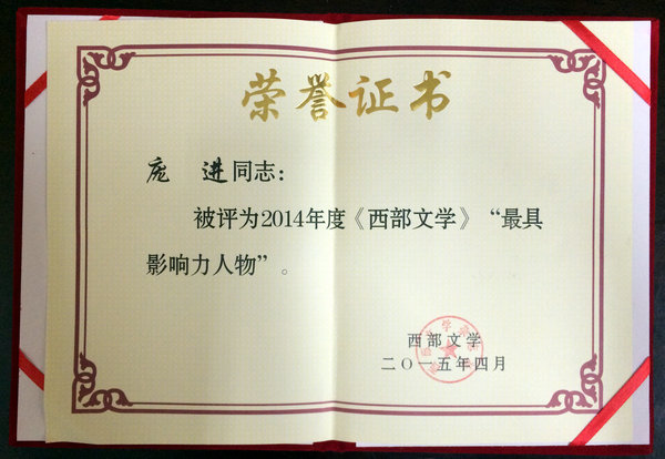 65. 被评为2014年度《西部文学》“最具影响力人物”(2015);