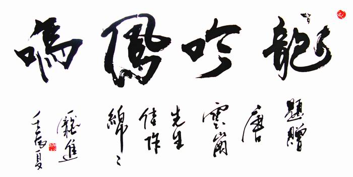 本站讯 6月20日,著名龙文化研究专家、龙凤国际联合会主席、西安报业传媒集团中华龙凤文化研究院院长庞进应铜川市文化局邀请,赴铜川市图书馆“文化大讲堂”,做了一场题为《中华龙文化及其当代意义》的讲演,受到热烈欢迎。在两个多小时的讲演及回答问题过程中,庞进向听众讲解了龙的定义、龙文化的定位和龙文化对当今百姓生活的渗透和影响,重点强调了以“天道”、“仁道”、“行道”为主要内容的“龙道文明”,对中华崛起、世界和平和人类文明的意义。演讲前后庞进还为铜川市图书馆及当地文化人题写了“龙神凤韵”、“龙吟凤鸣”等书法作品十余幅。(龙凤)