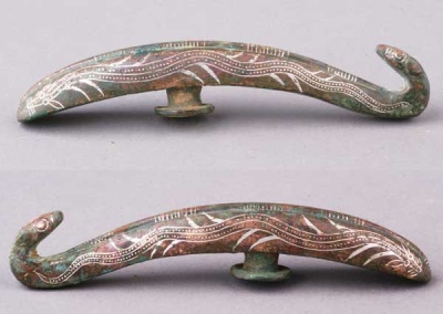 陕西省咸阳博物馆收藏有一件错银龙纹带钩,铸造精良、工艺精湛,尤其是带钩表面的错银双龙纹样,生动活波,实属罕见。