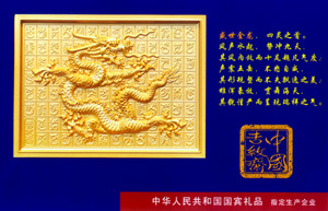 盛世金龙系列工艺品是吉纹斋与清华美院、山东工艺美院教授专家合作,传承中华瑰丽的龙文化,以精湛的浮雕艺术和现代的压铸工艺、镀纯金工节,精心打造出东方神龙的时代特征。神采奕奕,彰显王者风范;金光熠熠,呈现富贵吉祥。居家悬之,增满室福气祥和;公案置之,聚八方财运亨通;宾朋馈之,助事业腾达万里。