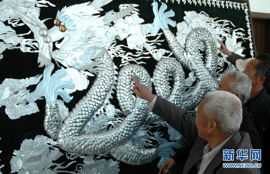 为2007年11月2日,观众在欣赏“奥运中国龙”。“奥运中国龙”是一名河南退休工人历时2年,用2008个易拉罐剪制而成,表达对北京奥运会的美好祝愿。新华社发