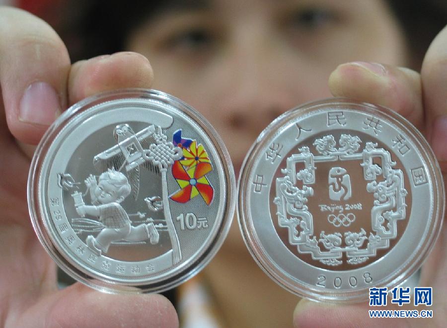 图为带有龙形图案的北京第29届奥林匹克运动会纪念银币(2006年9月摄)。新华社发
