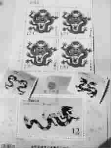今年大陆推出的生肖龙邮票一套单枚,面值人民币1.20元,图案采用正面圆睁双眼金光闪闪五爪蟠龙造型,与上轮生肖龙邮票相比,金龙气势更加威猛。据专家研究,龙纹分三爪、四爪或五爪,但五爪龙为历朝官窑瓷器与帝王龙袍胸前正中位置专用的图案纹饰。五爪采自传统的五行学说,象征“东、西、南、北、中”五方领土,象征国家统一,象征权威神圣不可侵犯。邮票设计师所采用气势威严的五爪金龙正面形象,恰好反映当前中华民族在东方崛起、强盛气势喷薄欲出、势不可当的气概。生肖龙邮票发行当日,集邮爱好者顶着晨星、冒着严寒,纷纷赶赴邮局,力争捷足先登,排队争购龙年生肖邮票。一位老爷爷购得龙年生肖邮票以后,喜滋滋地说,邮票上的祥龙能献瑞,还可避邪赐福……