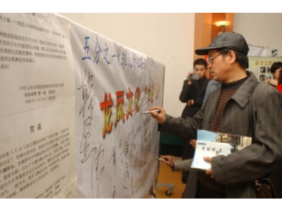 著名作家孙见喜在“申遗”展幅上签名