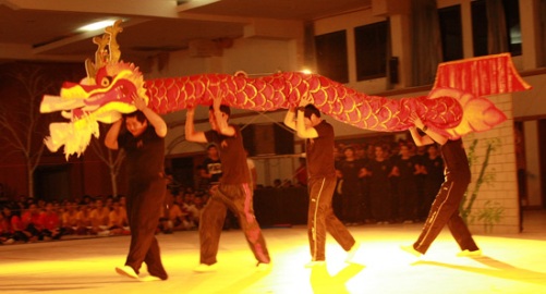 “运动之夜”是泰国大学学生们自己的盛会,每年举办一次。宋卡王子大学素叻塔尼校区的运动之夜晚会从12月3日晚7点一直持续到深夜12点,历时4个半小时。全校将近三千名学生参加了这场盛会,参与表演的学生高达约五百人。晚会上泰国学生用自己的方式展现了中国风情:龙是中华民族的图腾,是权力、威严和吉祥的象征,泰国学生通过表演舞龙,表达了他们对“龙”文化的理解和喜爱;在背景设计上采用了中国的对联——“不到长城非好汉,学好汉语闯天下”,将中国谚语和孔子学院汉语推广口号“学好中国话,朋友遍天下”相融合。此外,泰国学生们还通过展示中国传统服装,表达了对中华民族美学理念的理解和喜爱,让更多人感受到中国仪态万千的服饰美。