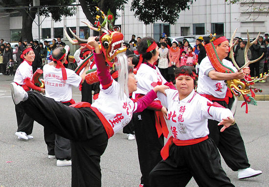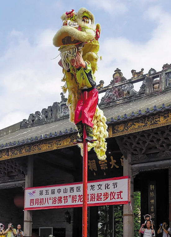 据说中山市西区长洲乡的“舞醉龙”至今仍保存着完整的套路。如今的中山“舞醉龙”又称“剪龙”舞或“转龙”舞,成为中山本土独特的汉族民俗艺术。每年农历四月初八的“浴佛节”祭祀活动中,当地人都要来一场“舞醉龙”。