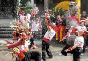 既为“醉龙”,自然少不了酒。有介绍说,喷酒这一举动,其实是对“僧家浴佛”涵义的一种延伸,因为相传这一天为佛祖诞辰,当年佛祖诞生时,天上神龙便会洒香水,为其沐浴洗礼。